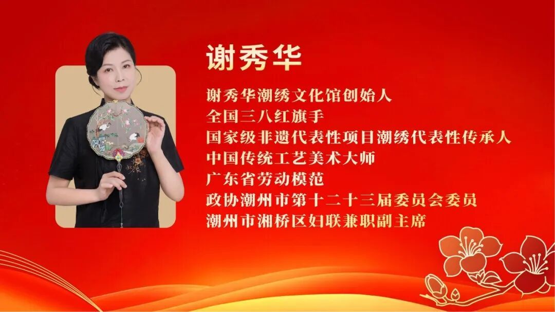 国家级非遗代表性项目潮绣代表性传承人谢秀华将分享她让千年潮绣在新时代焕发新生的逐梦故事,同步上演由华南农业大学艺术学院带来的时装秀《潮・韵》,在衣袂翩跹间展现潮绣魅力。