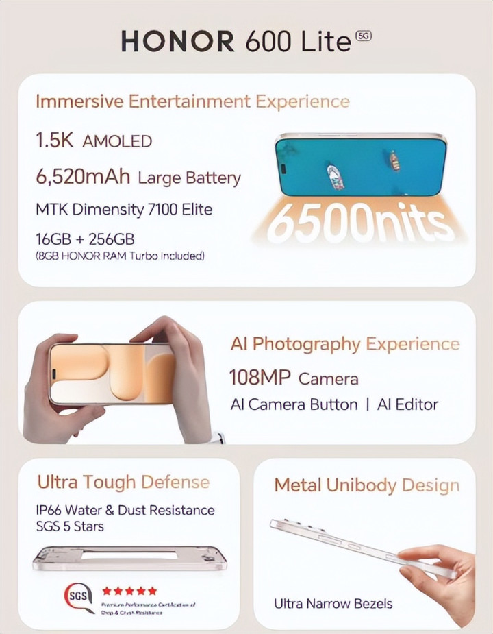 但就在大家以为千元机要摆烂的时候,荣耀直接扔出王炸——荣耀X80i(海外叫600 Lite)配置彻底曝光,这堆料程度,说是2026年上半年最卷千元机,一点不夸张,话不多说,咱们直奔主题!