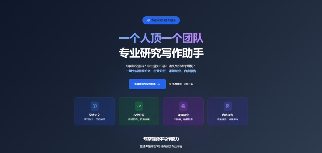 🔹专家级智能体平台(https://ra.ecoaitech.com/)专业研究写作助手,适合自由研究/行业分析/学术论文/内参建议/自媒体