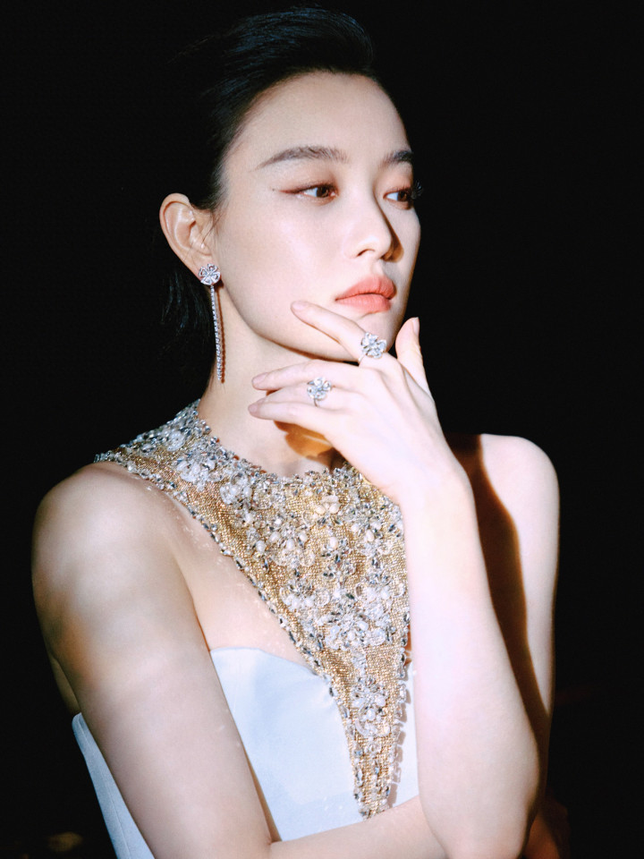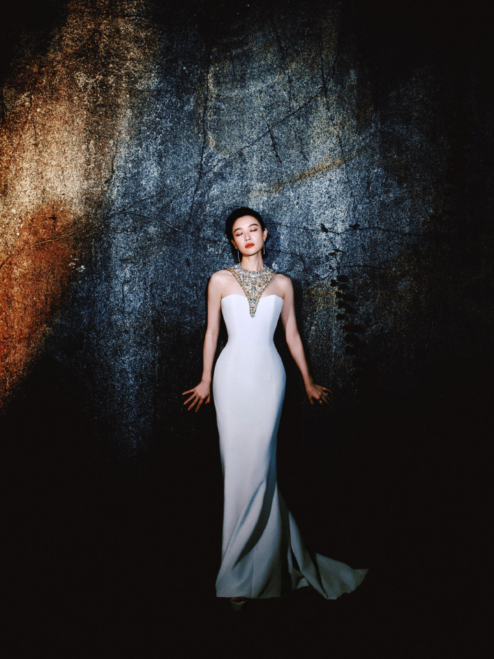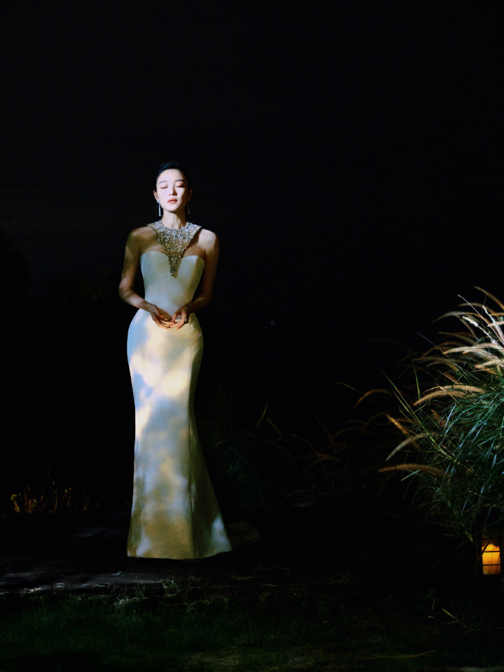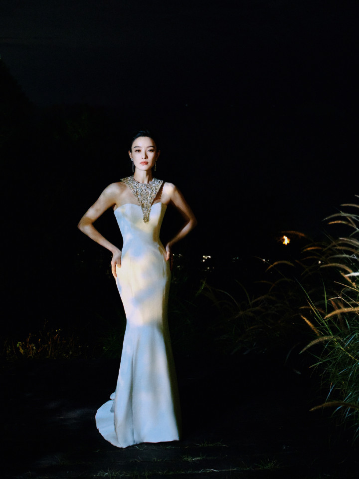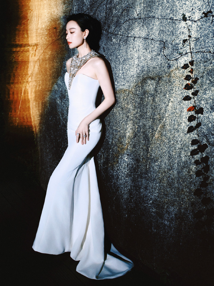 配资炒股开户倪妮抹胸连衣裙, 光影浪漫的表白